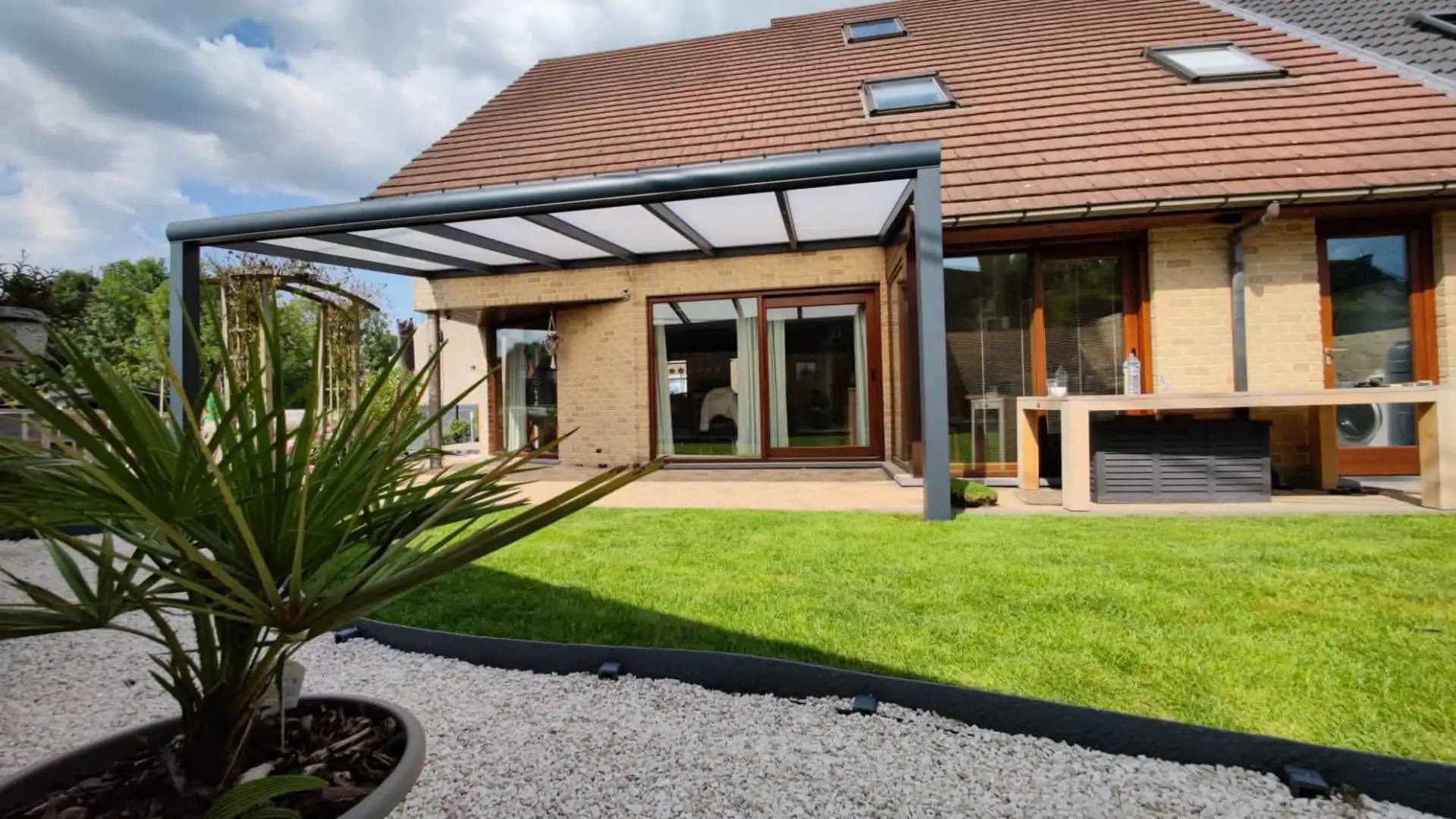 A veranda is a more permanent, roofed structure attached to your home, often supported by columns or posts. It typically has open sides and is designed to blend indoor and outdoor living. Verandas are great for: